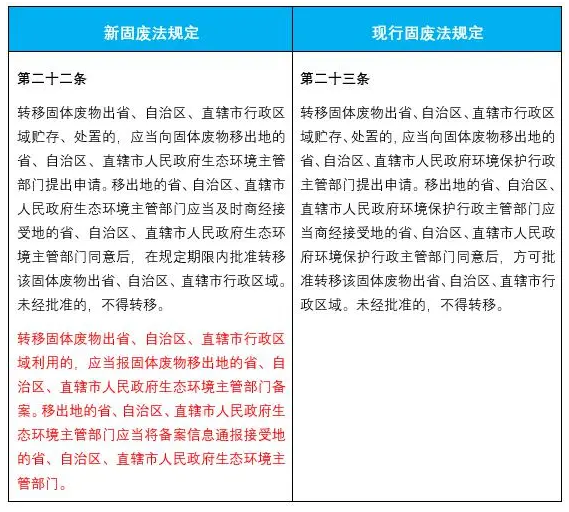 2.增加了跨省轉(zhuǎn)移固廢利用的,需報移出地生態(tài)環(huán)境主管部門備案的要求