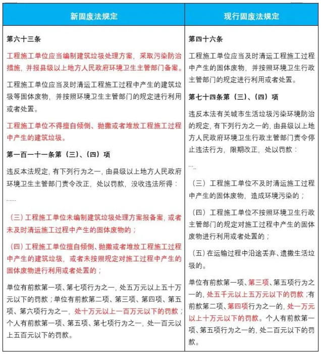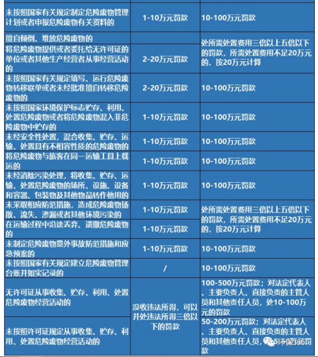 新固廢法普遍提高了對違法行為的罰款金額幅度,具體見下表: